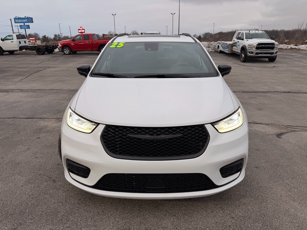 It is equipped with the latest generation of XM/Sirius Radio. Good News! This certified CARFAX 1-owner vehicle has only had one owner before you. This 2025 Chrysler Pacifica 's Forward Collision Warning system alerts the driver to potential front-end collisions, enhancing safety. The leather seats in this 2025 Chrysler Pacifica are a must for buyers looking for comfort, durability, and style. Never get into a cold vehicle again with the remote start feature on this Chrysler Pacifica. Keep your hands warm all winter with a heated steering wheel in this Chrysler Pacifica . It has automated speed control that adjusts to maintain a safe following distance, enhancing highway driving convenience. You'll never again be lost in a crowded city or a country region with the navigation system on this Chrysler Pacifica. Apple CarPlay: Seamless smartphone integration for this Chrysler Pacifica - stay connected and entertained on the go! This unit comes equipped with Android Auto for seamless smartphone integration on the road.
