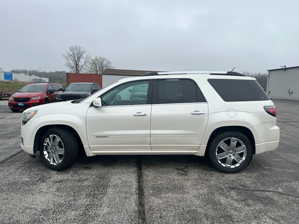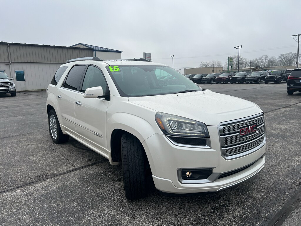 2015 GMC Acadia Denali AWD - 3.6L V6, Monticello IN Experience premium family driving with this 2015 GMC Acadia Denali, featuring a powerful 3.6L V6 engine and confident all-wheel drive for year-round control. Located in Monticello, IN, this GMC Acadia Denali blends upscale comfort with rugged capability, making it ideal for commuting, road trips, and daily family duties. Interior highlights include a heated steering wheel for chilly mornings, a premium BOSE stereo system for immersive sound, and XM Radio to keep you entertained on long drives. Remote start adds convenience, allowing you to warm up or cool down the cabin before you get in. This vehicle also comes with a CARFAX Clean Report for added peace of mind about its history and maintenance. Enjoy Denali-exclusive styling and upscale materials throughout the cabin, plus flexible seating and cargo space to accommodate passengers and gear. Safety and technology features are thoughtfully integrated to keep you connected and comfortable. Priced competitively in Monticello, IN, this 2015 GMC Acadia Denali offers exceptional value - the best price available for a well-equipped Denali with AWD and the reliable 3.6L V6. Contact us to schedule a test drive and see why this GMC Acadia Denali is the smart choice for drivers seeking capability, comfort, and premium features at a great price.