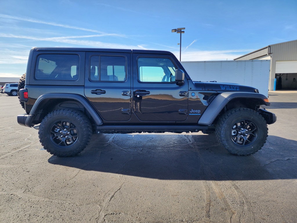 Quick Order Package 29w Willys 4xe: Class II Receiver Hitch; Willy's Suspension; 7 and 4 Pin Wiring Harness; LT285/70R17C BSW Mud Terrain Tires; Willys 4xe Hood Decal; Conventional Differential Front Axle; Off-Road Plus Mode; 17 X 7.5 Painted Black Wheels; 4-Wheel Drive Swing Gate Decal; Black Grille; MOPAR All-Weather Floor Mats; Rock Protection Sill Rails; 97 MPH Vehicle Max Speed Calibration; Front LED Fog Lamps; LED Premium Reflector Headlamps; Auxiliary Switches; E-Locker Rear Axle; Molded in Color Rubicon Highline Flare; 4.10 Rear Axle Ratio. Black 3-Piece Hard Top. Black Clearcoat. **Equipment listed is based on original vehicle build and subject to change. Please confirm the accuracy of the included equipment by calling the dealer prior to purchase.**